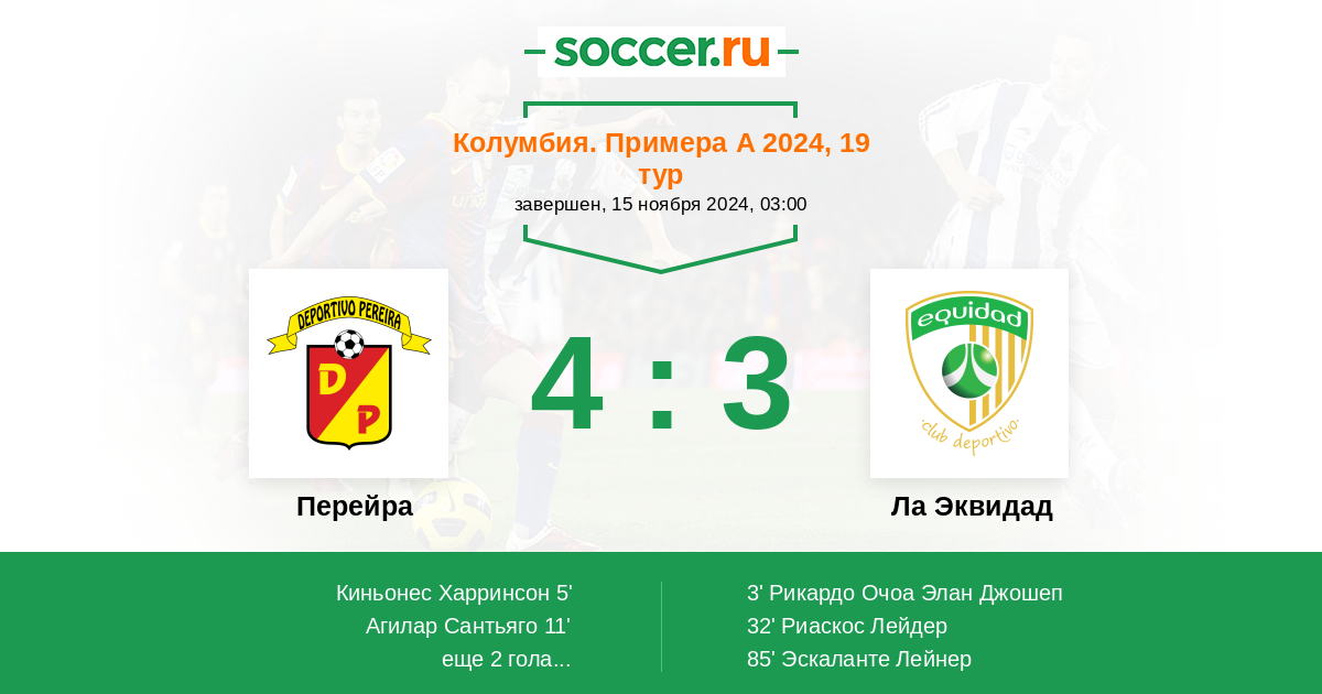 11' (2:1) Агилар Сантьяго (15) (Пидрахита Алехандро (11))