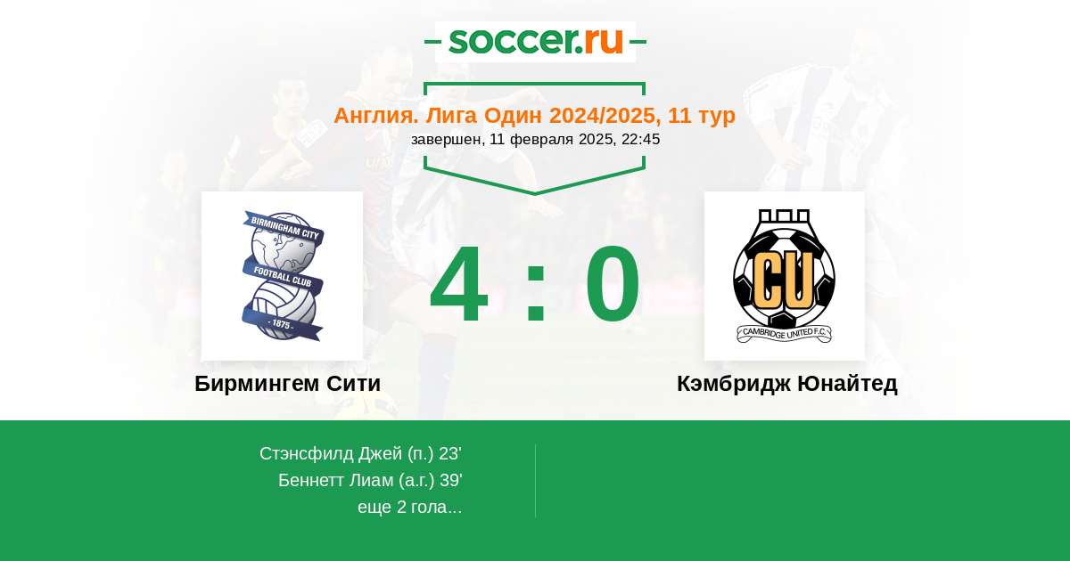 39' (2:0) Автогол Беннетт Лиам (2)