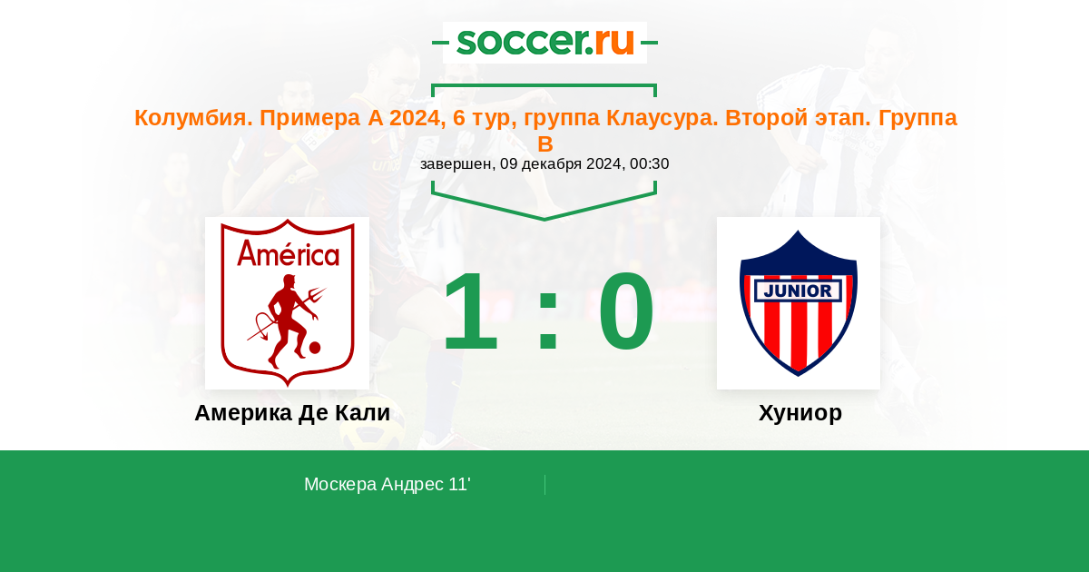 11' (1:0) Москера Андрес (4) (Сапата Алексис (25))