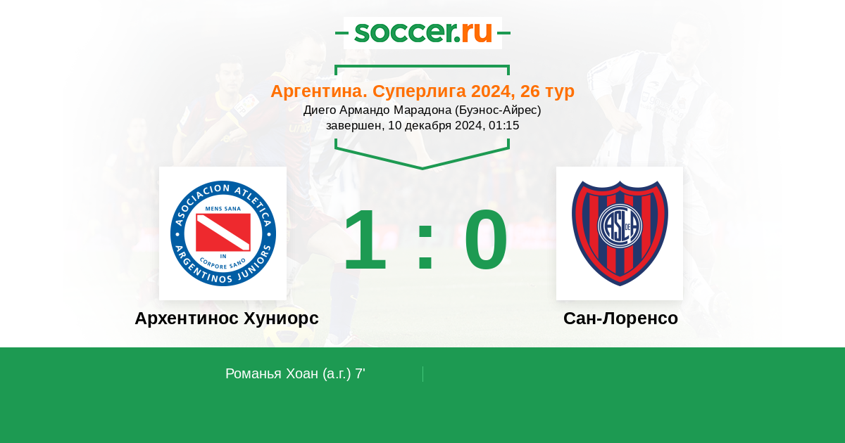 7' (1:0) Автогол Романья Хоан (4)