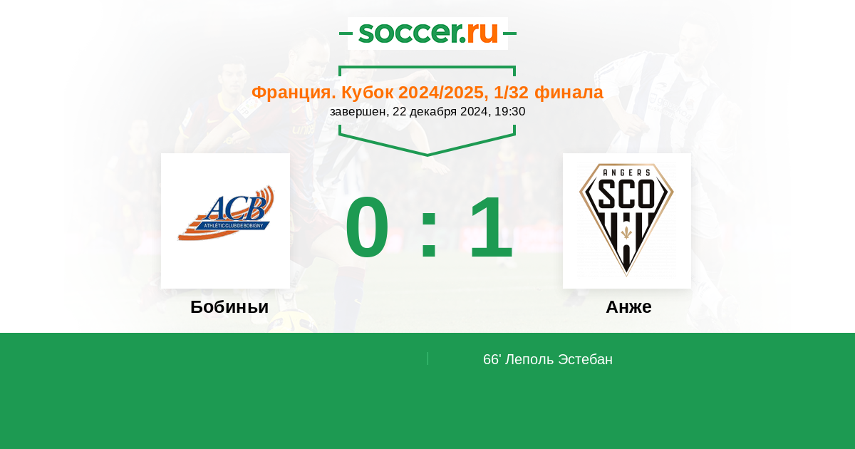 66' (0:1) Леполь Эстебан (9) (Ферхат Зинедин (11))