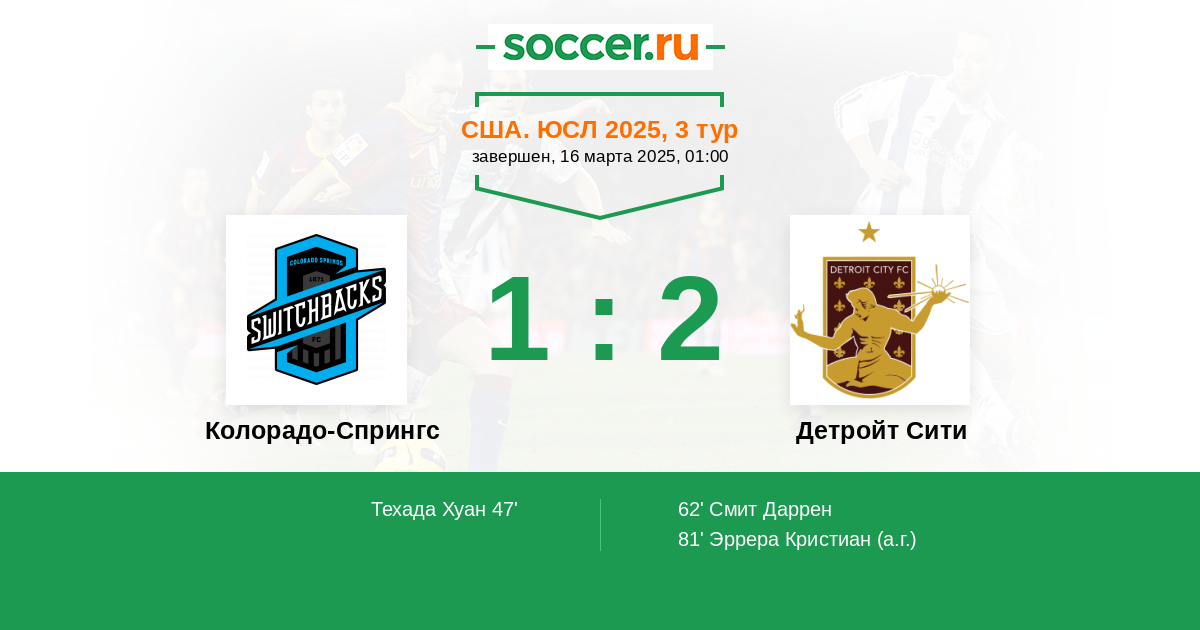 81' (1:2) Автогол Эррера Кристиан (1)