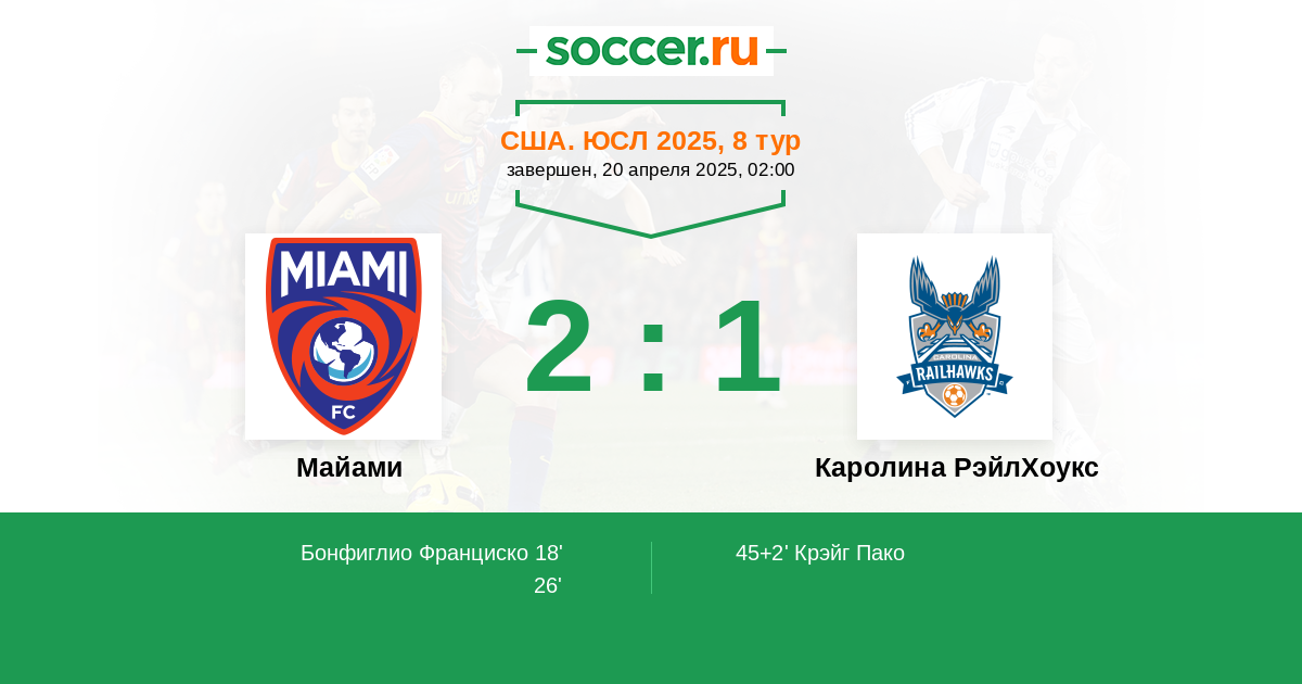 45+2' (2:1) Крэйг Пако (5) (M. Maldonado)