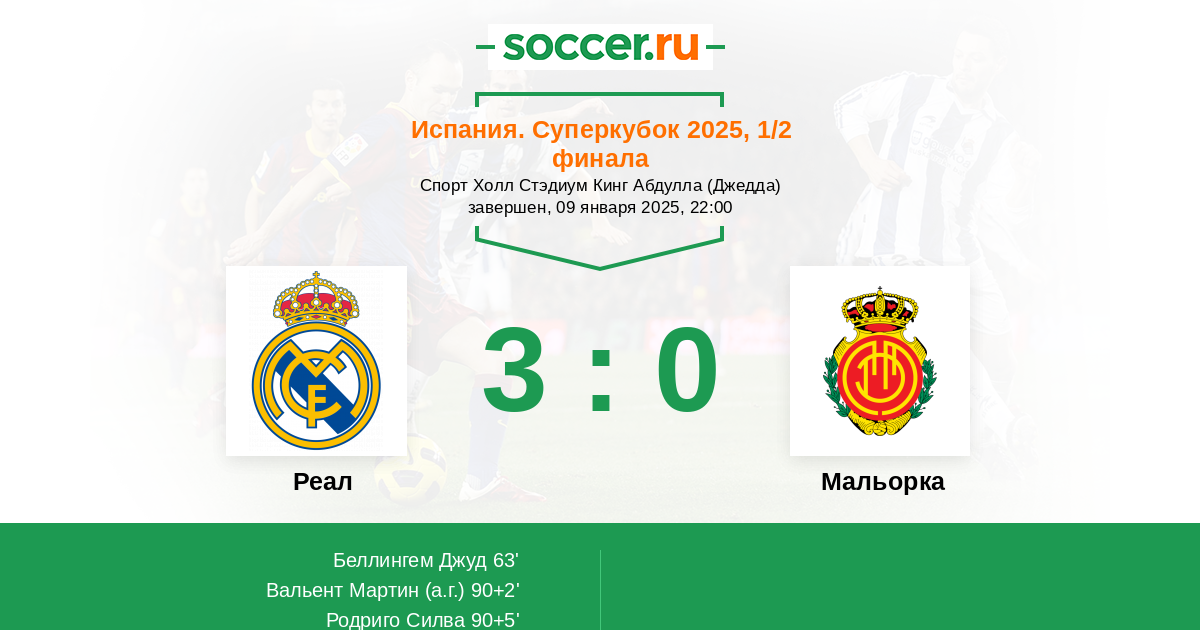 Дисквалификация бразильца не распространяется на Суперкубок, поэтому он должен быть в старте. Есть сомнения в появлении на поле Рюдигера, который недавно получил небольшое повреждение.