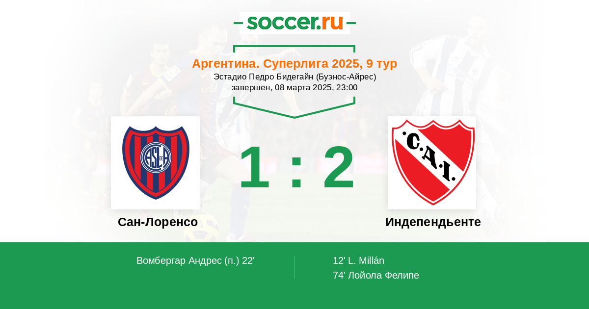 12' (0:1) Миллан Лаутаро (14) (Лойола Фелипе (5))