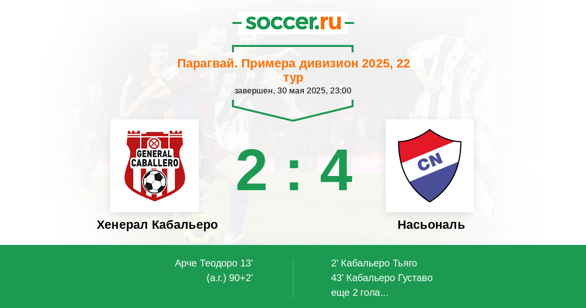 2' (0:1) Кабальеро Тьяго (10) (Кабальеро Густаво (11))