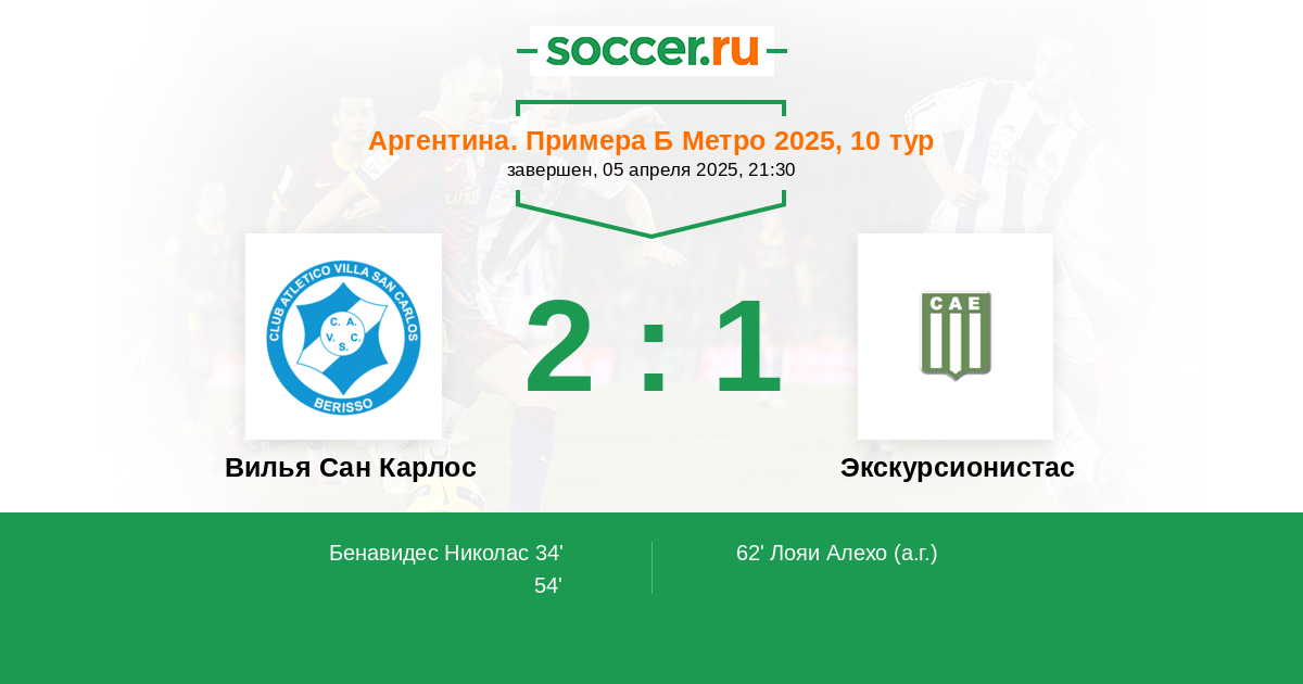 62' (2:1) Автогол Лояи Алехо