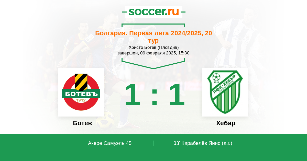 45' (1:1) Акере Самуэль (7) (Попов Ивелин (10))