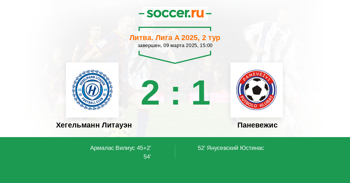 45+2' (1:0) Армалас Вилиус (6)