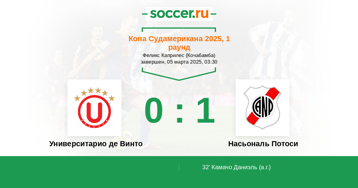 32' (0:1) Автогол Камачо Даниэль (8)