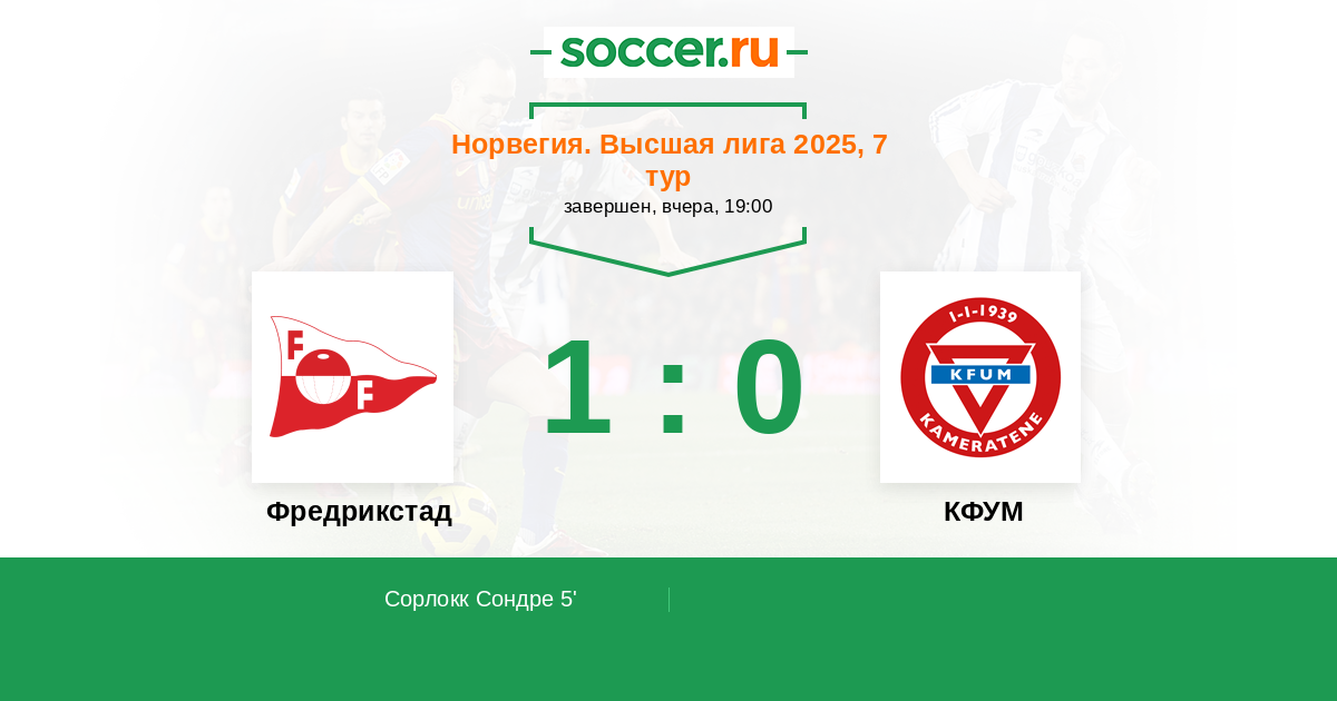 5' (1:0) Сорлокк Сондре (13) (Холтен Эмиль (9))