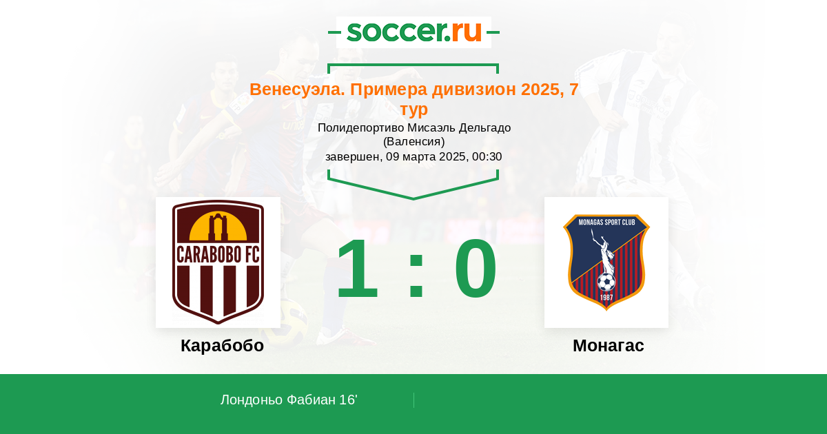 16' (1:0) Лондоньо Фабиан (9) (Каносалес Кристиан (11))