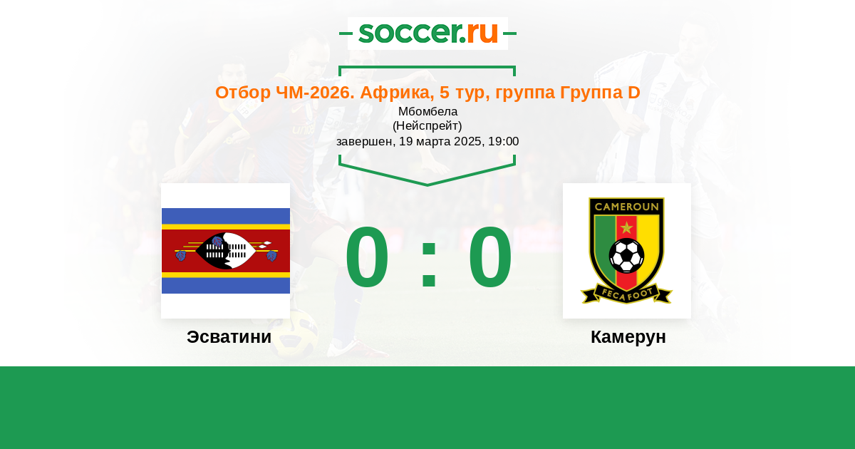 В предстоящем матче 5 - го тура отбора на ЧМ 2026 в зоне Африка между командами сборной Эсватини и сборной Камеруна , более чем явным фаворитом на победу является команда гостей сборная Камеруна
