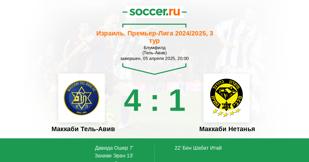 33' (3:1) Захави Эран (7) (Давида Ошер (77))