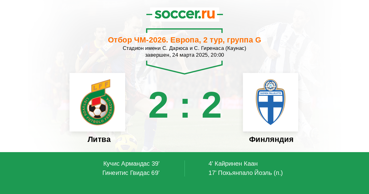 В предстоящем матче 2 - го тура отбора на ЧМ 2026 в зоне Европа в группе G между командами сборной Литвы и сборной Финляндии , моим фаворитом на победу является команда гостей