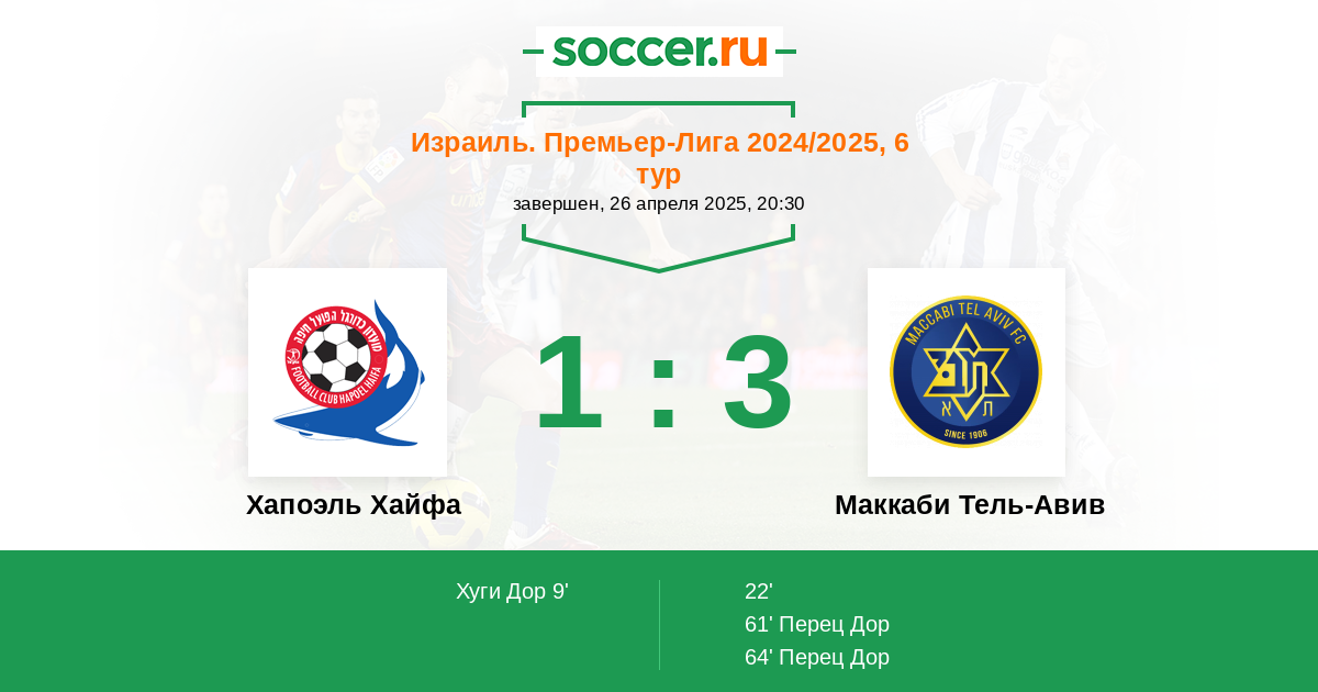 61' (1:2) Перец Дор (42) (Каничовски Гавриэль (16))