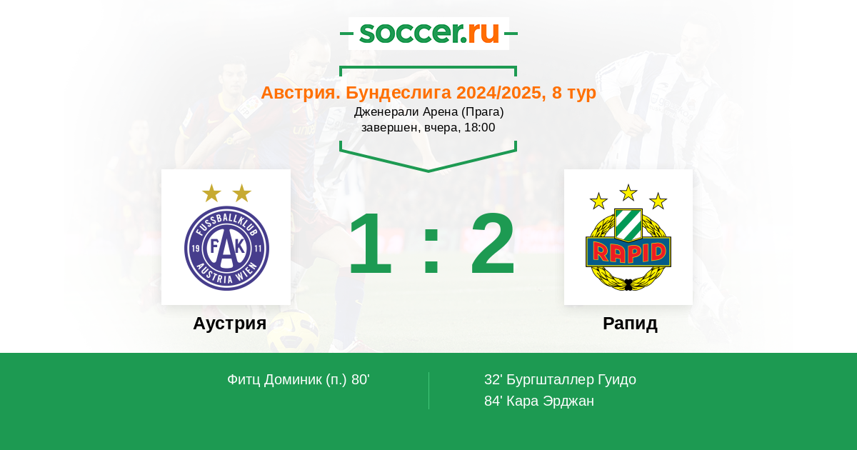 84' (1:2) Кара Эрджан (99) (Сейдль Маттиас (18))