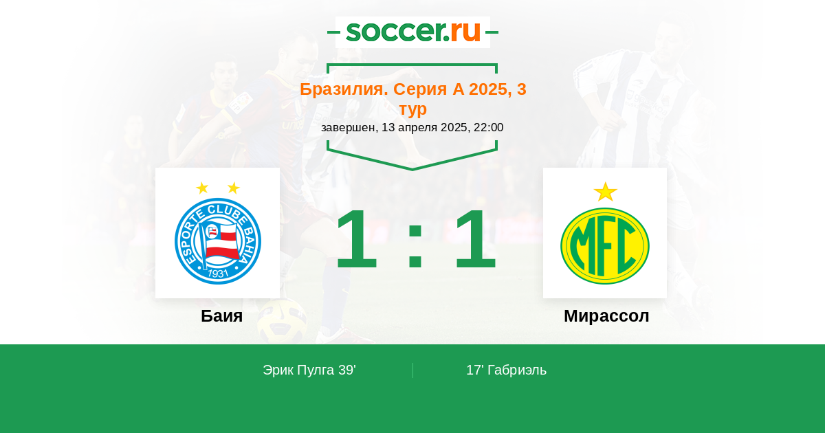 39' (1:1) Эрик Пулга (16) (Лусиано (46))