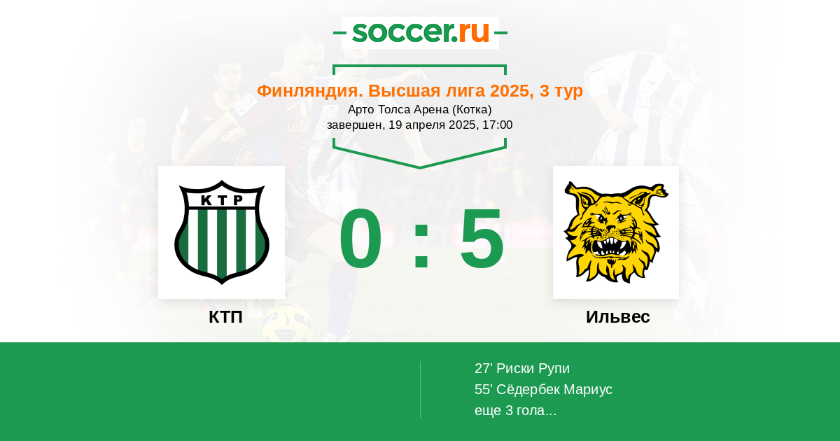 27' (0:1) Риски Рупи (10) (Юккола Оива (19))