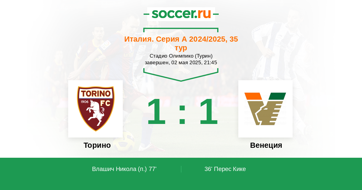 Венеции надо спасаться, они в зоне вылета и у них ещё имеются шансы на сохранение прописки в Серии А, а Торино в принципе уже и не вылетит, и в Еврокубки тоже уже не попадёт, будут играть в своё удовольствие и обыграют рвущихся в атаку противников