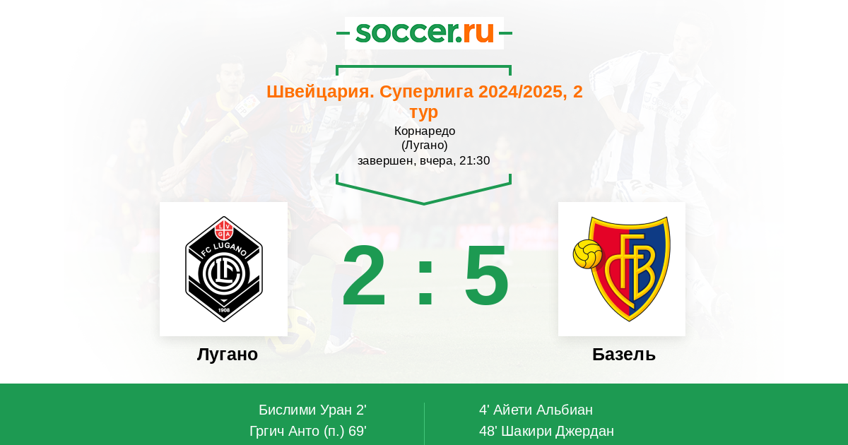 2' (1:0) Бислими Уран (25) (Дзанотти Маттиа (46))