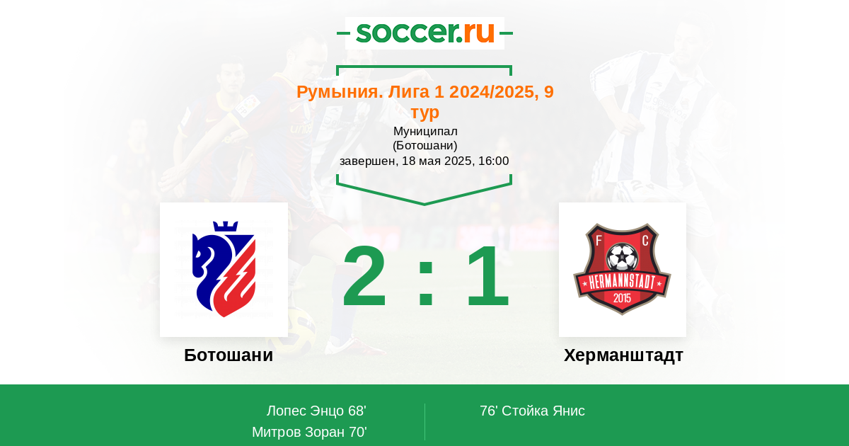 70' (2:0) Митров Зоран (11) (Бодиштяну Стефан (7))