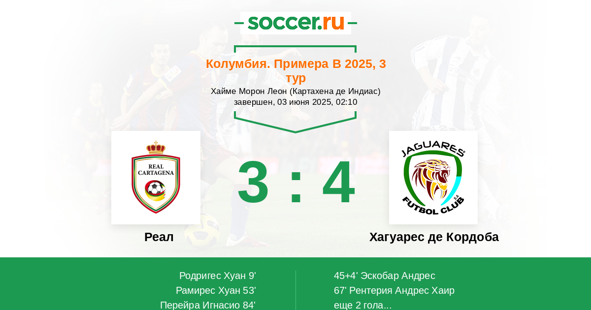 67' (2:2) Рентерия Андрес Хаир