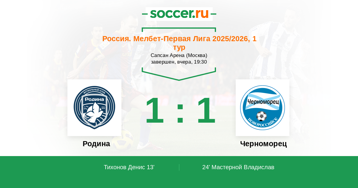 Думаю, родные стены должны помочь хозяевам – тут ждём от них победы. «Родина», которая и без того шикарно провела весеннюю часть, усилилась серьёзными игроками – амбиции колоссальные. «Черноморец» подавлен после итогов прошлого сезона.