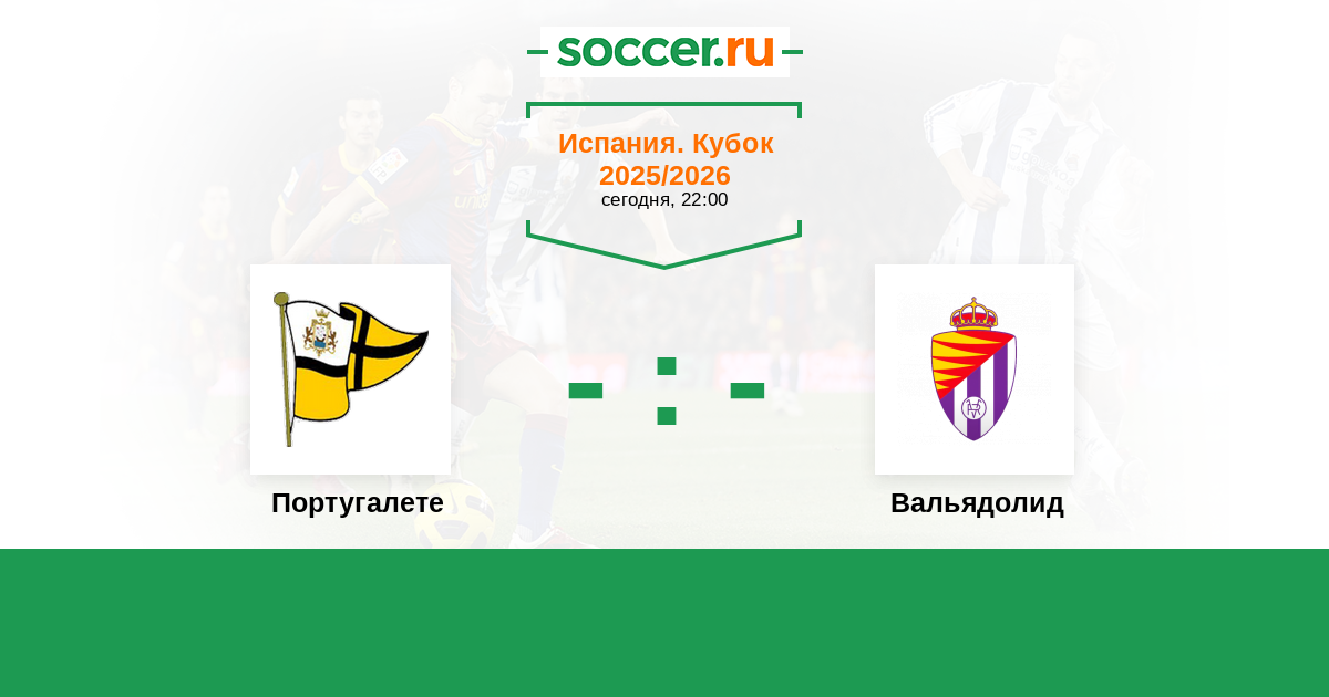 Португалете? Я ничего не знаю про эту команду, кроме того, что она играет в Кубке Испании 🇪🇸 по футболу и сколько-то раундов уже прошла. Я думаю, Вальядолид с ней разберётся довольно быстро и спокойно. Победа гостей.