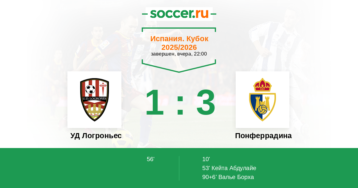 90+6’ 1:3 Валье Борха