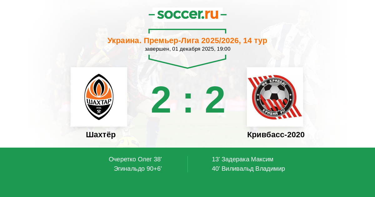 13' (0:1) Задерака Максим (94) (Парако Карлос (9))