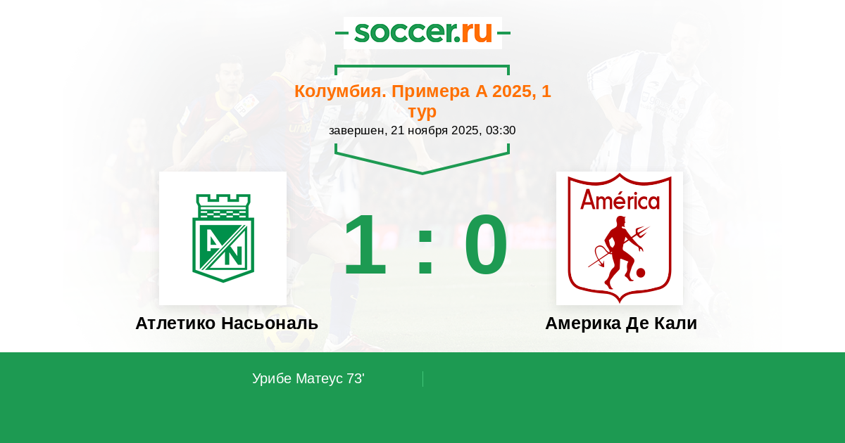 73' (1:0) Урибе Матеус (8) (Морено Марлос (7))
