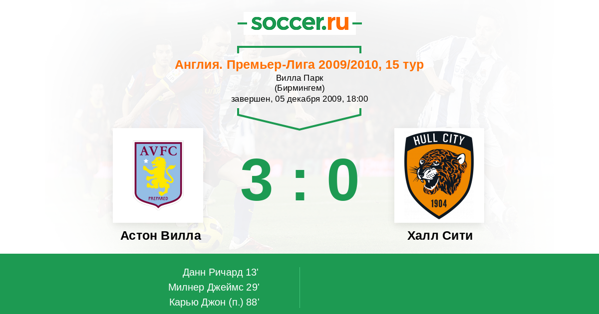 13' (1:0) Данн Ричард (5) (Милнер Джеймс)