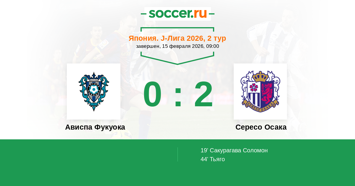 44' (0:2) Тьяго (11) (Саката Рейя (17))