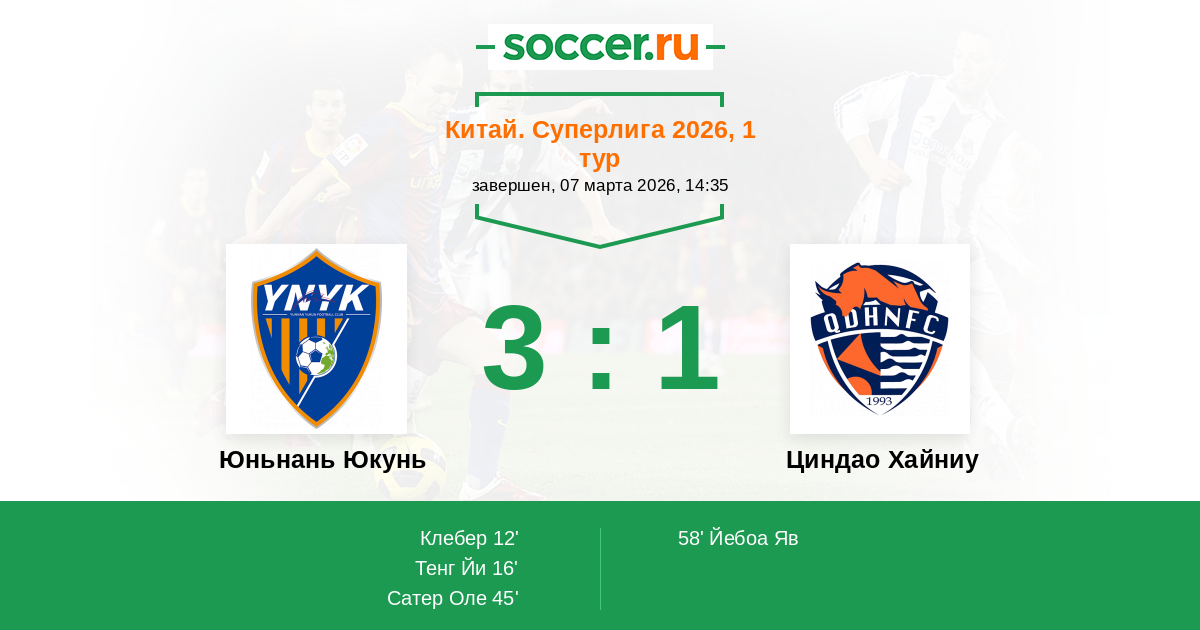 Матчи Китай. Суперлига 2026