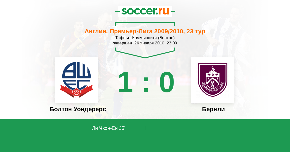 35' (1:0) Ли Чхон-Ен (27) (Дэйвис Кевин (14))