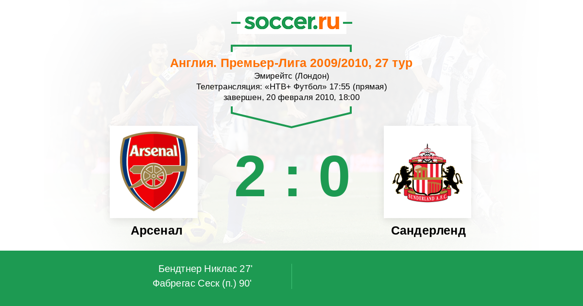 27' (1:0) Бендтнер Никлас (52) (Эбуэ Эммануэль)