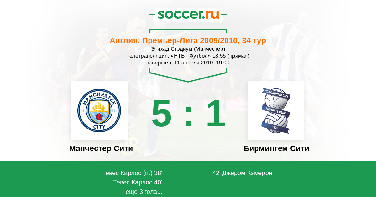 40' (2:0) Тевес Карлос (32) (Онуоха Недум (4))