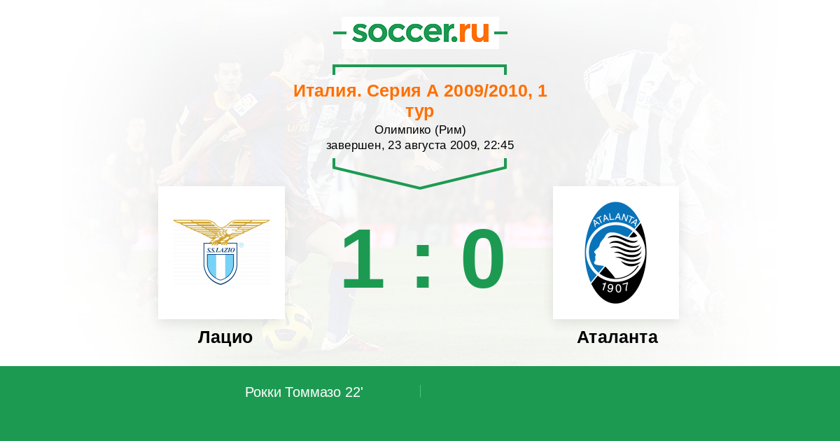 22' (1:0) Рокки Томмазо (9) (Фоджа Паскуале (17))