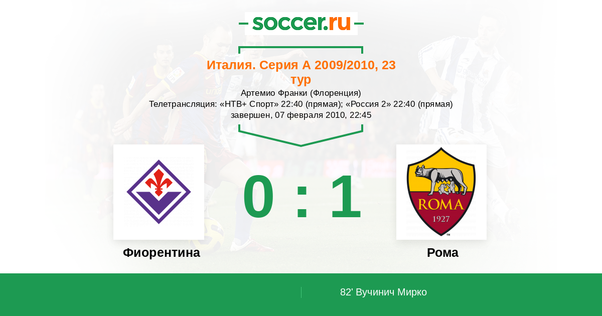 82' (0:1) Вучинич Мирко (9) (Де Росси Даниэле (16))
