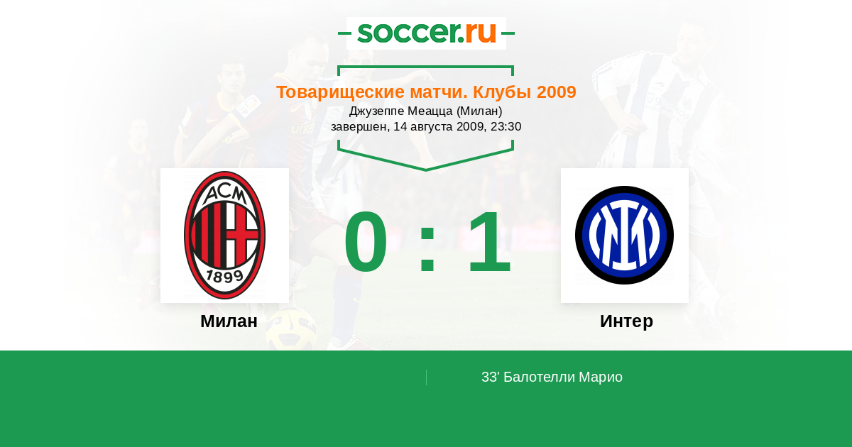 33' (0:1) Гол со штрафного Балотелли Марио (Куарежма Рикарду)