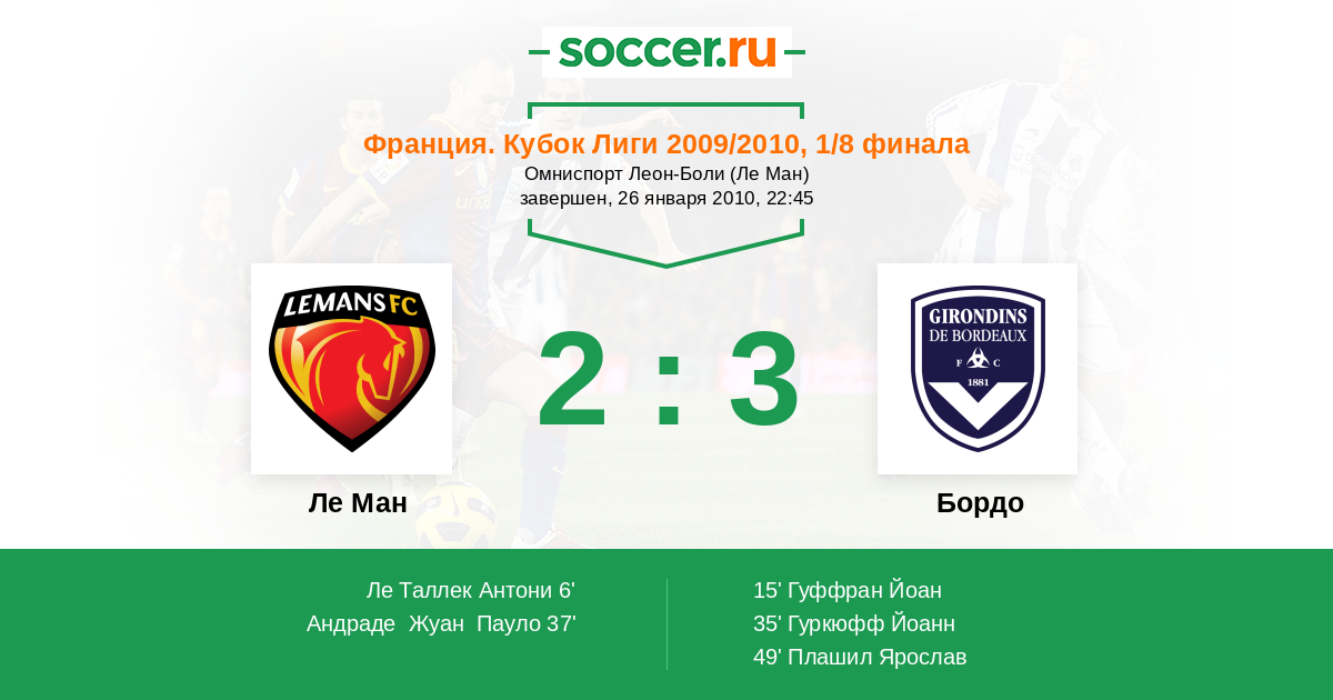 Франция. Кубок Лиги 2009/2010, 1/8 финала