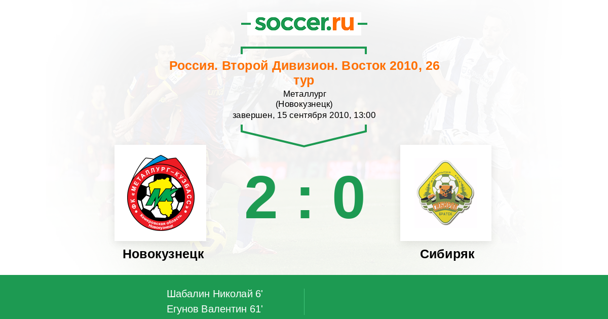 Матчи Россия. Второй Дивизион. Восток 2010