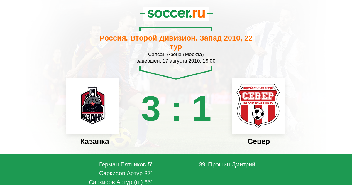 65' (3:1) Саркисов Артур