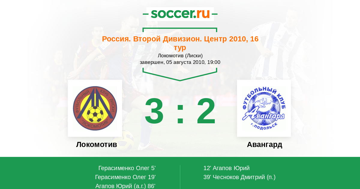 86' (3:2) Автогол Агапов Юрий