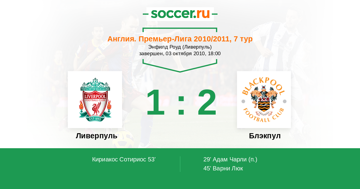 Матчи Англия. Премьер-Лига 2010/2011