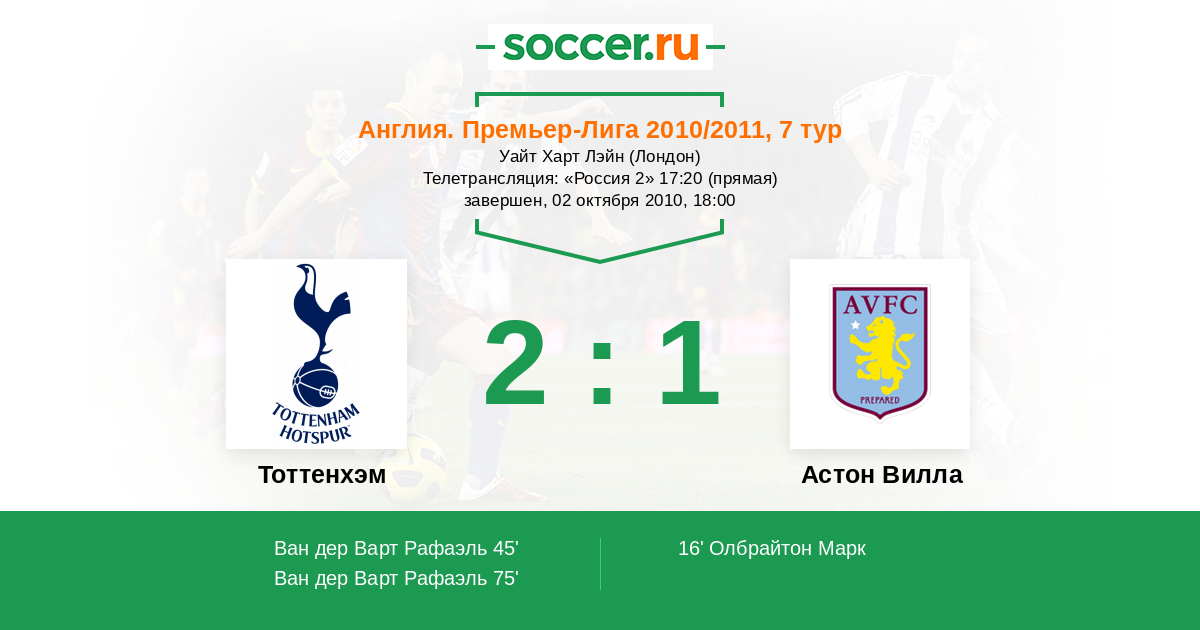 Матчи Англия. Премьер-Лига 2010/2011