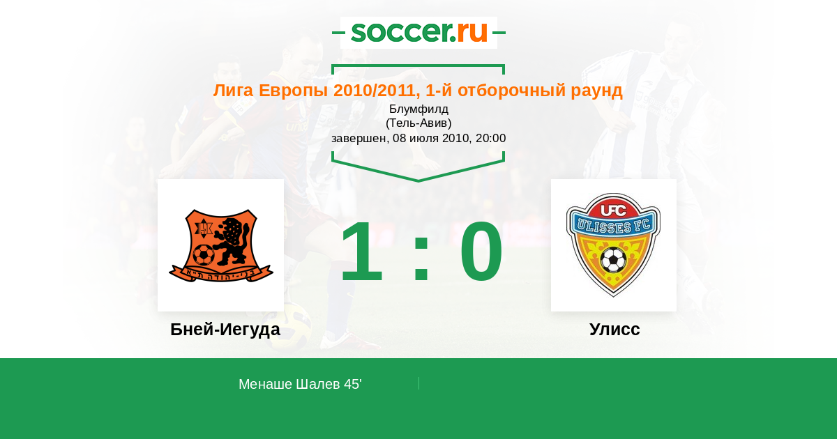 45' (1:0) Менаше Шалев (26)