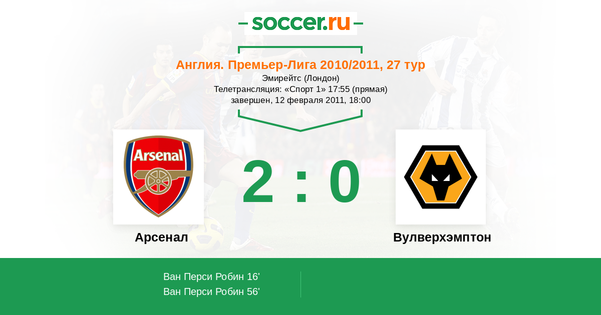 56' (2:0) Ван Перси Робин (10) (Уолкотт Тео (14))