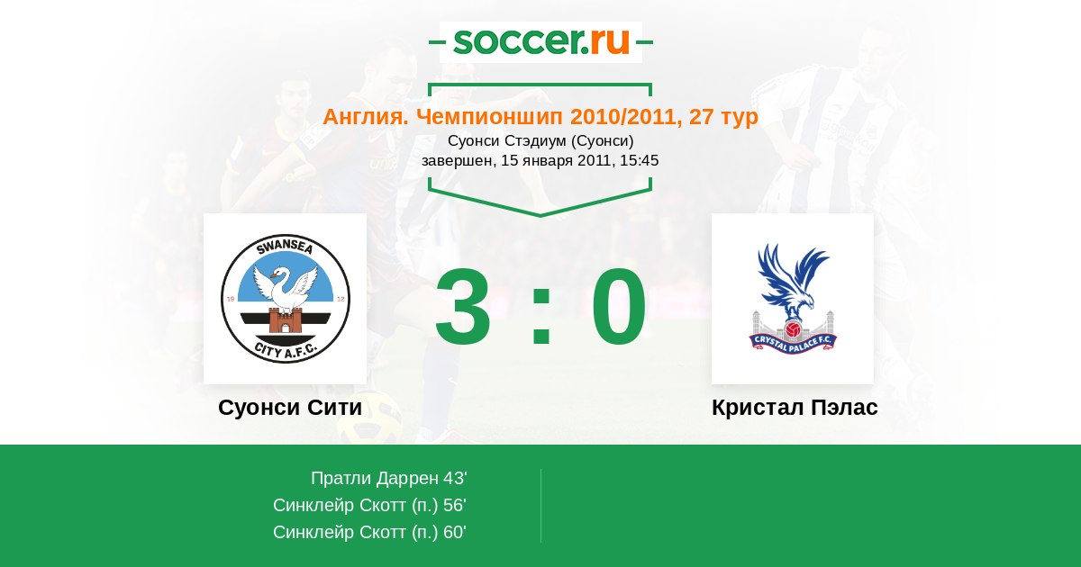 43' (1:0) Пратли Даррен (8) (Синклейр Скотт (21))